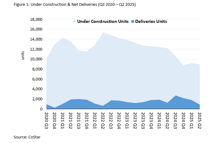 Delivery of new multifamily units slowed significantly in the second quarter of 2025, and the construction pipeline continues to get smaller.