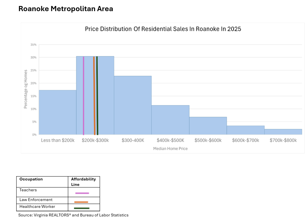 The Roanoke metropolitan area has seen 70% of home sales close below $400,000 in 2025.