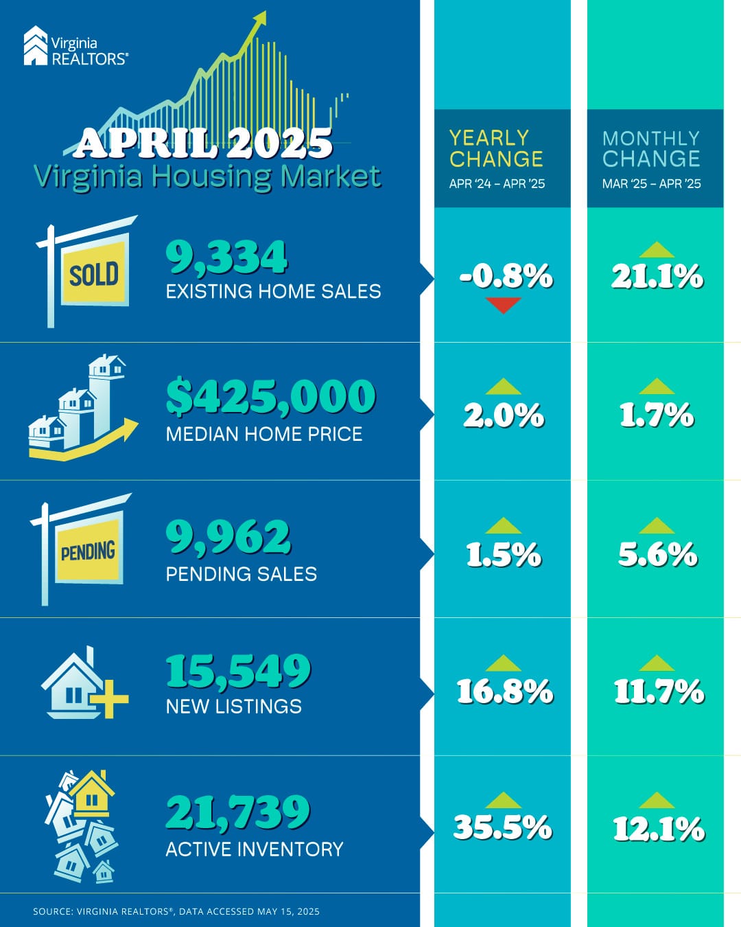 The April 2025 Virginia Home Sales Report is OUT! Check out the highlights to help keep your clients informed about what’s happening in Virginia’s market.